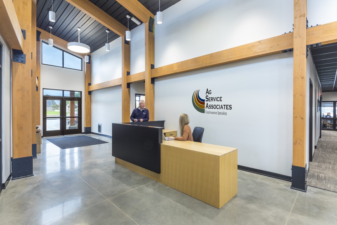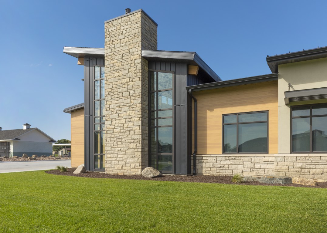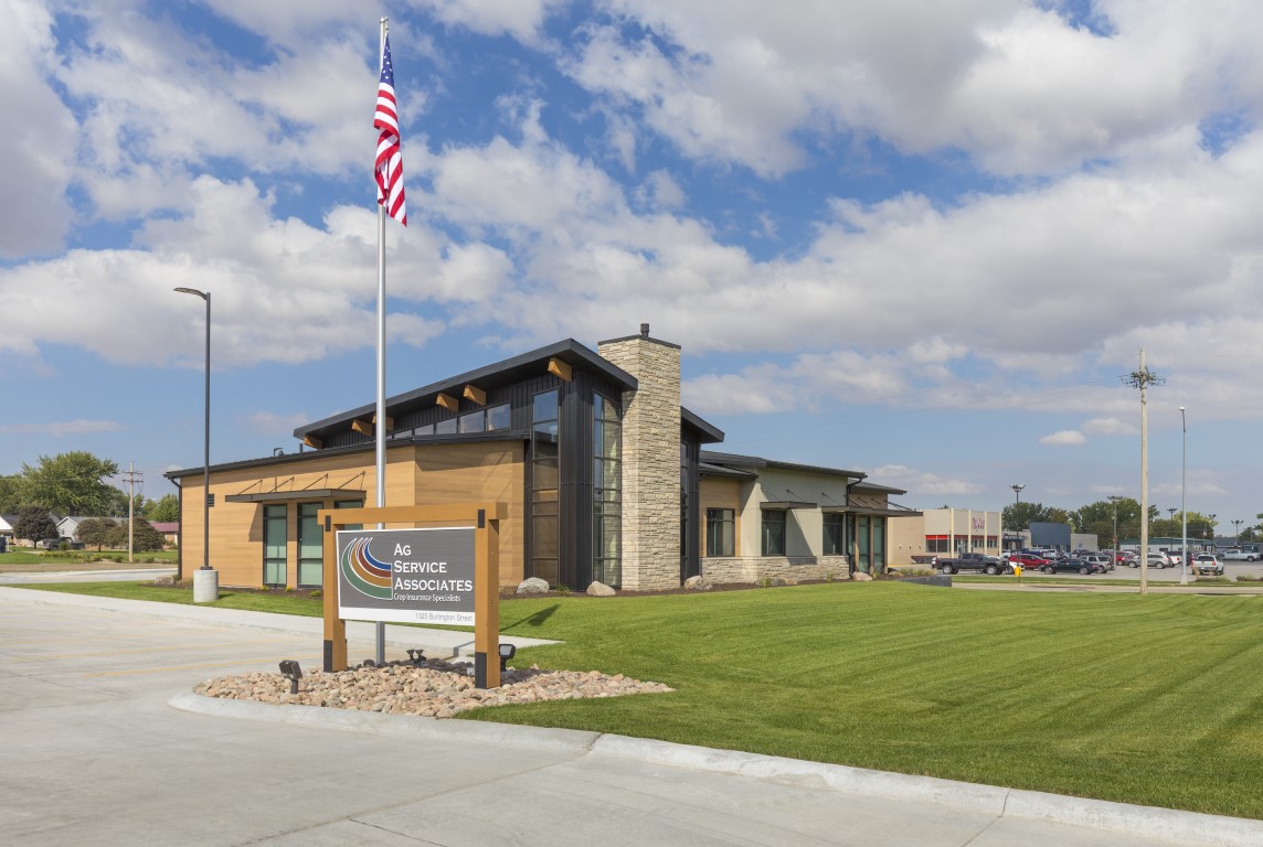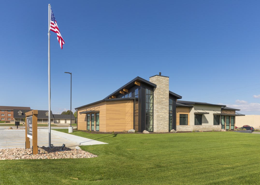 This landmark office building sits along a main highway through Holdrege providing a handsome welcome to visitors. It features a distinctive entry and two-story lobby anchored by a stone fireplace, several walls of widows that flood the interior with natural light, thoughtfully planned offices and a conference room, generous storage and support spaces, and a careful integration of mechanical and data infrastructure to keep operations seamless.