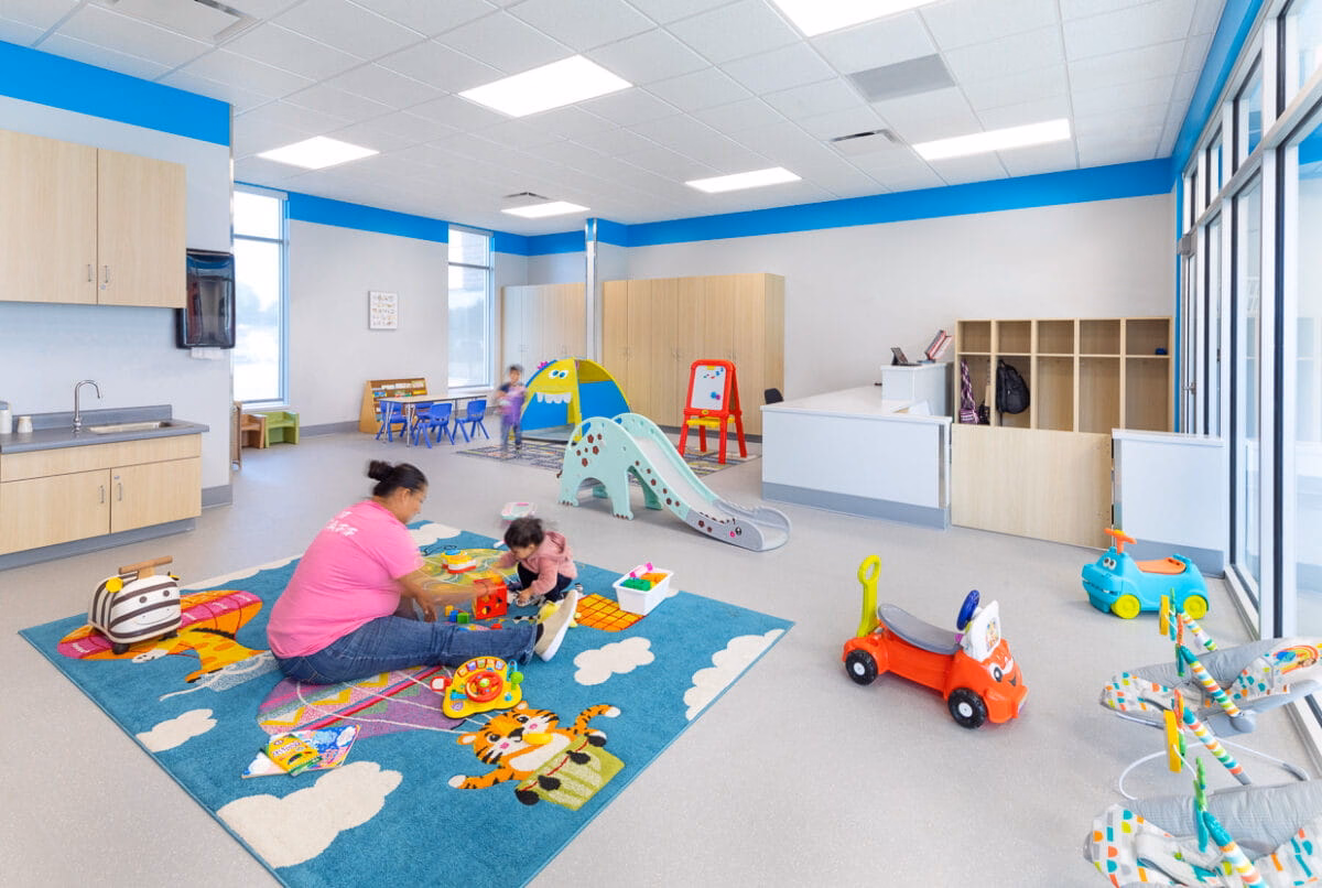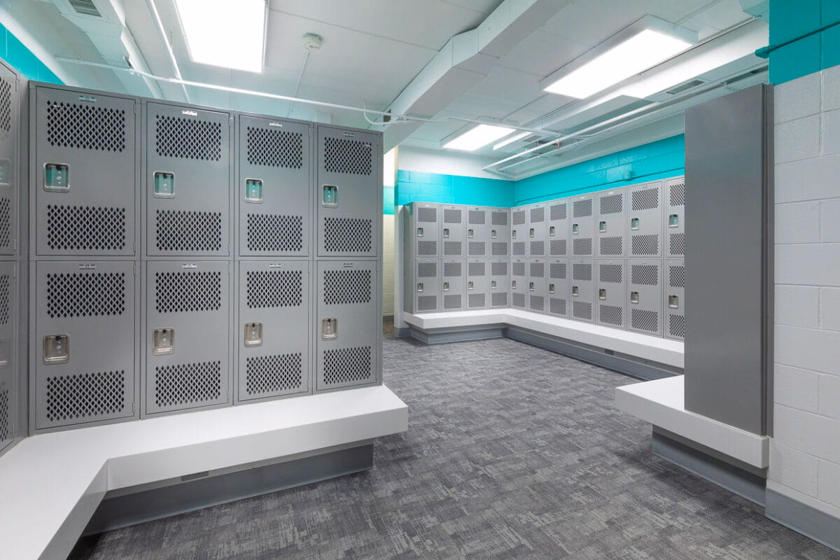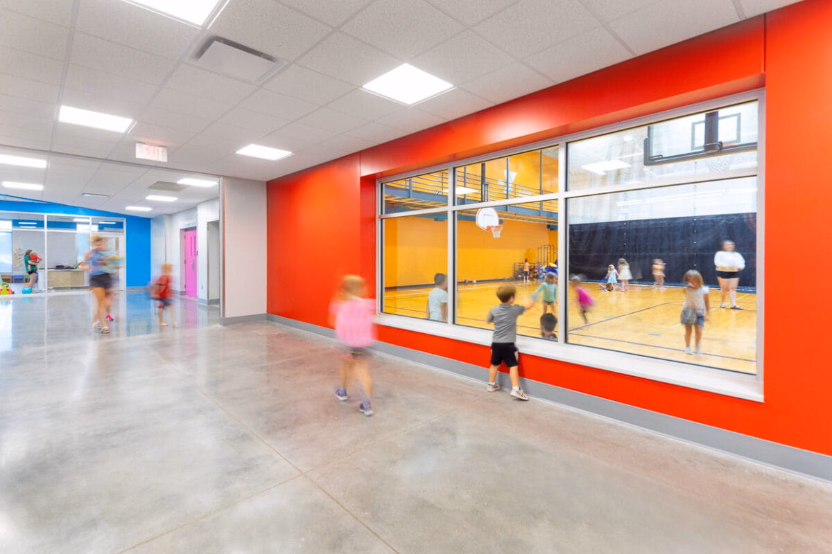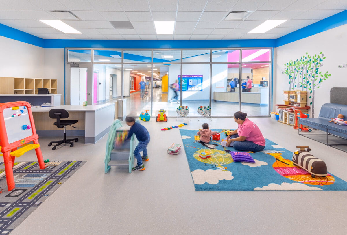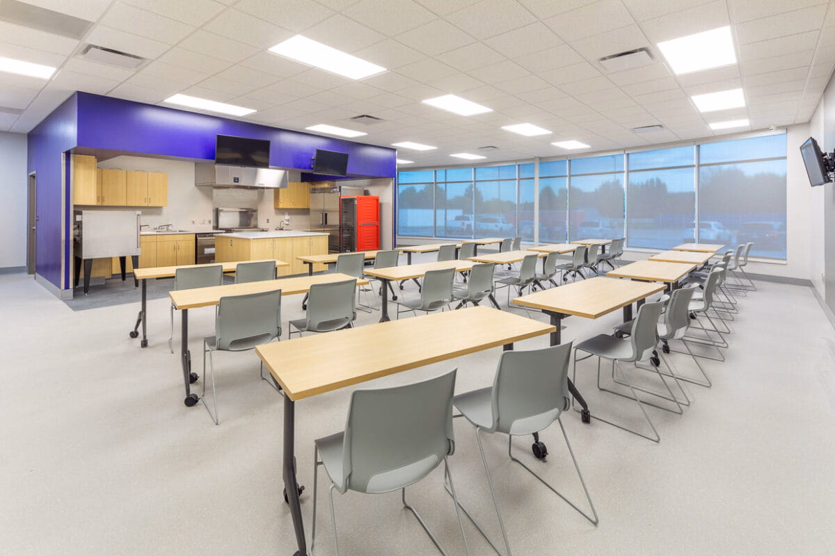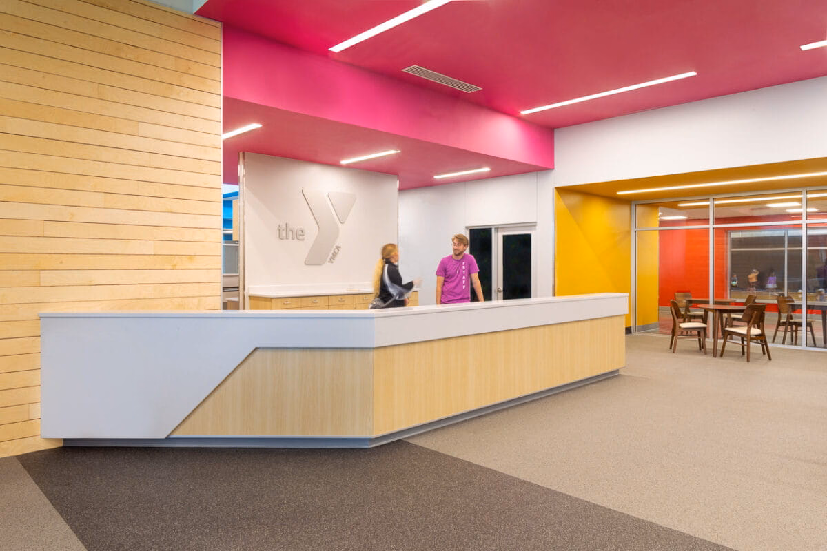 This transformative expansion to the Kearney Family YMCA added a spacious fitness center with a wall of windows, a versatile community room with kitchen, dedicated fitness studios, updated locker rooms, new staff offices and welcome desk, and a cozy coffee nook.
