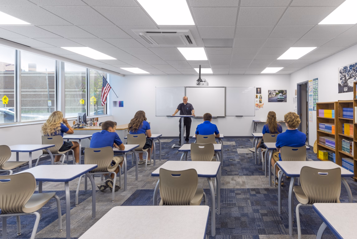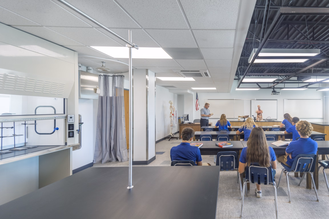 The addition and renovation at Saint Cecilia High School elevates the student experience by creating a modern, inspiring learning environment for students.