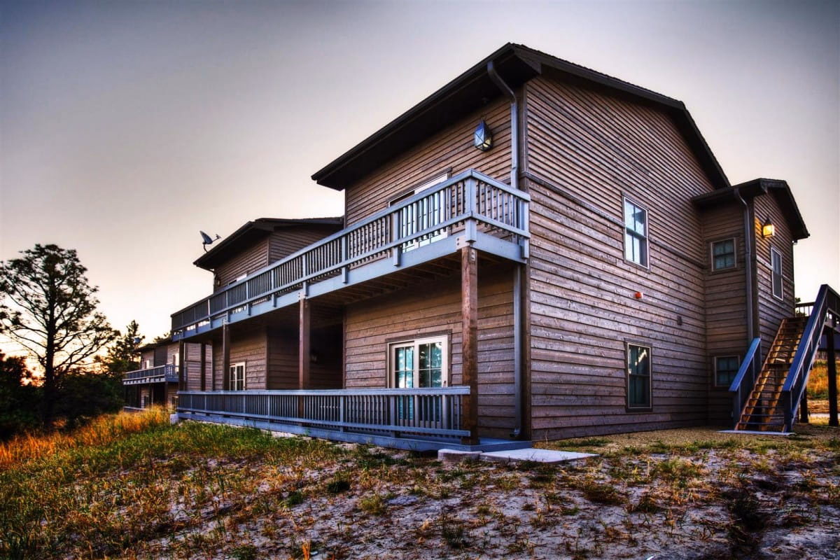 In addition to accommodations in the lodge itself, guests can choose to stay in one of the many duplex cabins, each designed with a comfortable living room, bedrooms, large windows, and a porch or deck to admire the views.